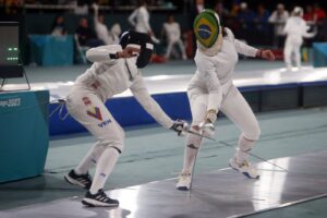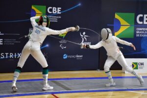 Ana Beatriz Fraga (dir.) venceu Stella Santos (esq.) na decisão do sabre. Foto: Rosele Sanchotene. [...]