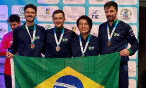 Bronze por equipes na espada masculina fecha participação do Brasil no Sul-Americano